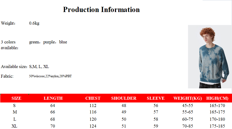 2021Retro tie-dye hem sweater men's bottoming sweater