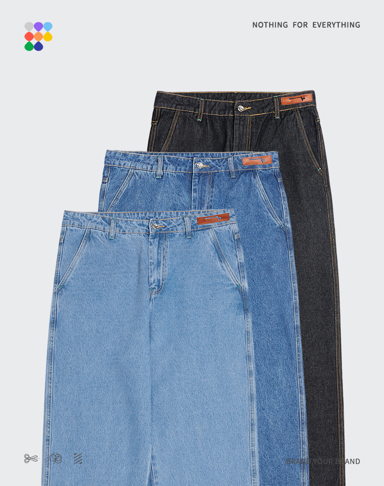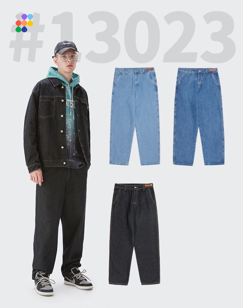 New Arrival Baggy Jeans men Casual Straight Unisex Wide leg Washed Solid Color Cotton Pants Men Denim Jeans - S / Light blue is backordered and will ship as soon as it is back in stock.