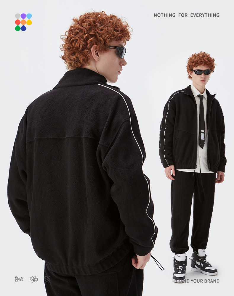 Reflective Custom In Bulk Mens Zipper plaid Fleece Jackets
