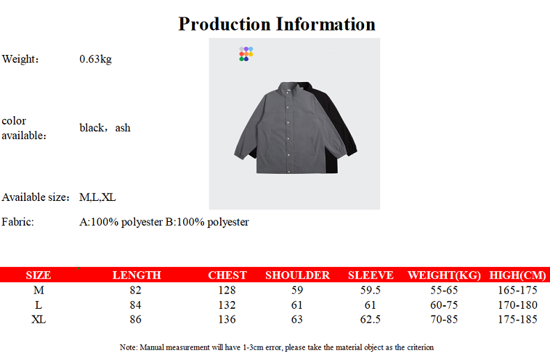 125g heavy plain fabric casual tooling windproof jacket warm loose coat