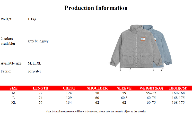 2021 autumn cotton clothing corduroy retro stand-up collar warm jacket