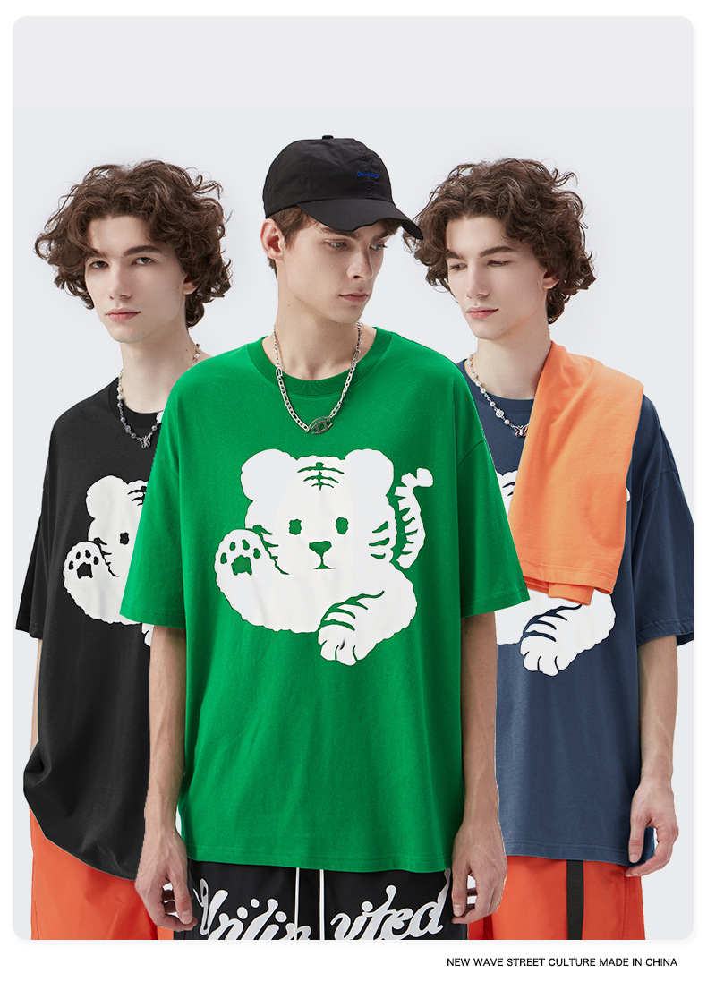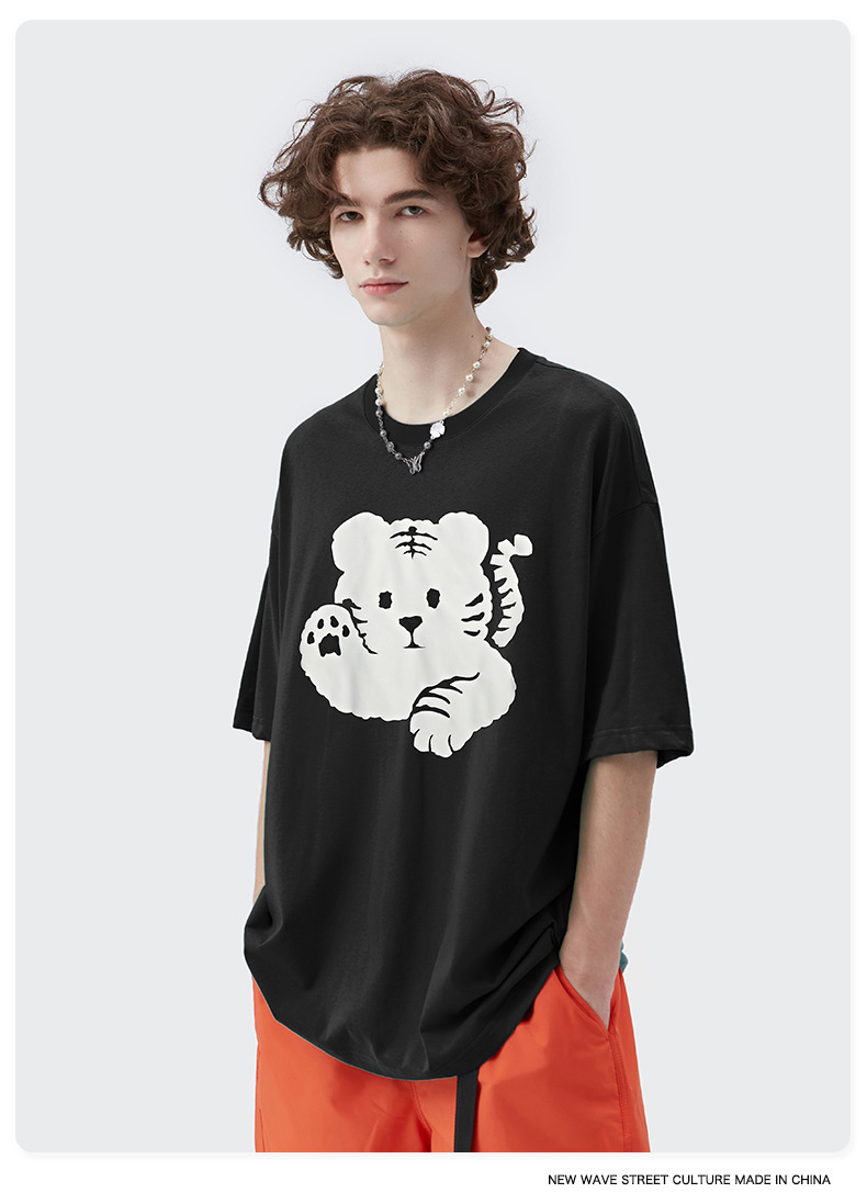 Screen Printing Tiger Image Cotton T Shirts For Men